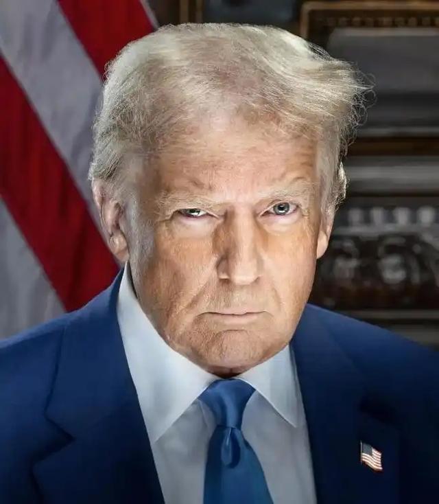 更换后的肖像画更为公众所熟知,是今年特朗普就职时所用的头像。照片中的特朗普表情严肃,嘴唇紧闭,直视镜头。