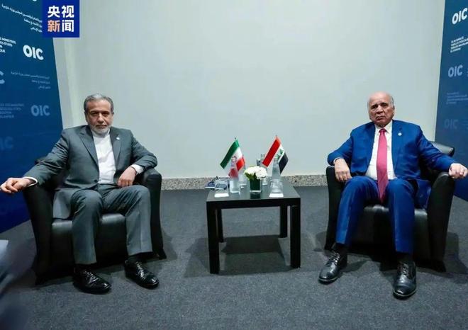 当地时间6月21日,在土耳其伊斯坦布尔,伊朗外交部长阿拉格齐(左)与伊拉克副总理兼外交部长侯赛因(右)会面