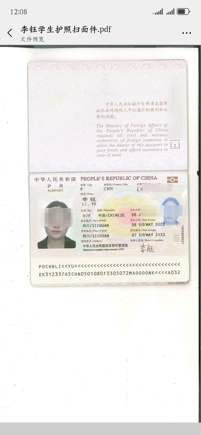 李钰的护照
