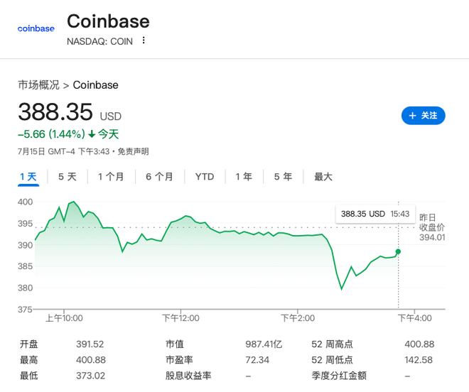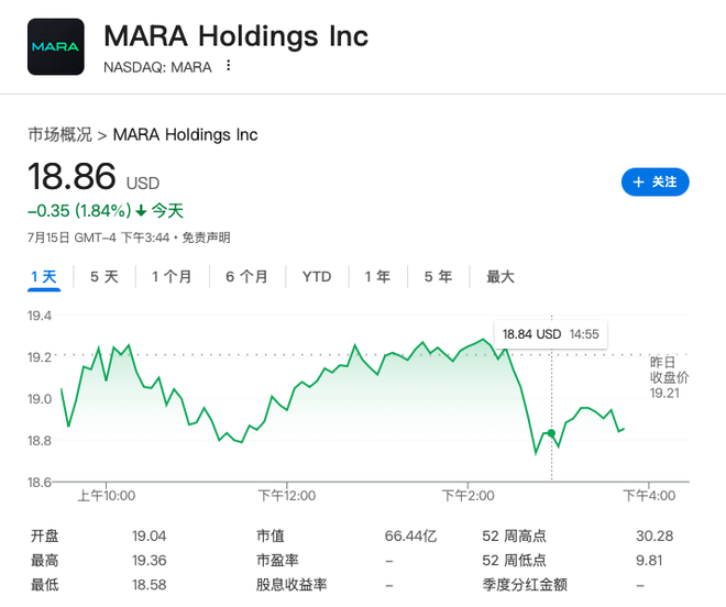 投票失败后,与加密货币相关的股票开始下跌。稳定币公司Circle的股价一度下跌超过7%,跌幅后收窄至4.5%左右。Coinbase股价一度下跌超过4%,跌幅后收窄至1.4%左右。数字资产公司MARA Holdings股价一度下跌超过2%,跌幅随后收窄至1.8%左右。