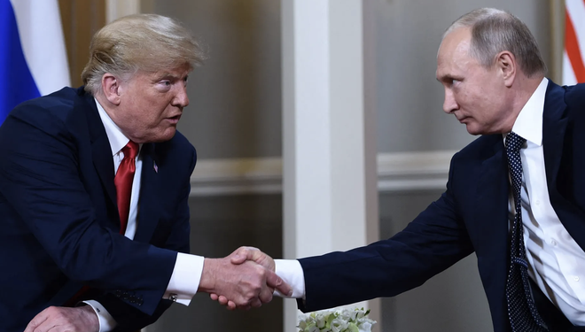 2018年,特朗普和普京在芬兰的一场会议上握手