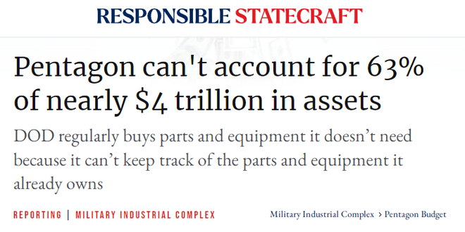 如今五角大楼的审计问题已经成为美军及其军工利益复合体腐败的标志。2024年11月,五角大楼公布了2024财年年度审计结果——连续第七年未能通过审查。时任美国国防部副部长兼首席财务官迈克尔·麦科德承认,“这个结果并不令人惊讶,我知道从表面上看,我们似乎没有取得进展,但已经在如何理解(财务)挑战的深度和广度方面走出了困境。”