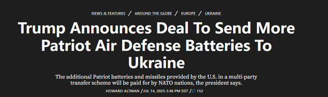 美国总统特朗普14日宣布将通过北约向乌克兰提供“顶级武器”,作为施压俄罗斯尽早结束俄乌冲突的措施之一。其中最受外界关注的举措是,首批美制“爱国者”反导系统 “将在几天内送抵乌克兰”。