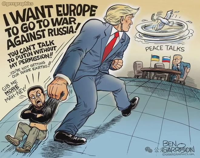 特朗普拉着泽连斯基找普京谈判 漫画图