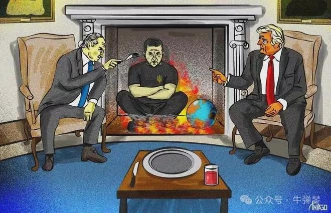特朗普和普京把泽连斯基放在火上烤 漫画图