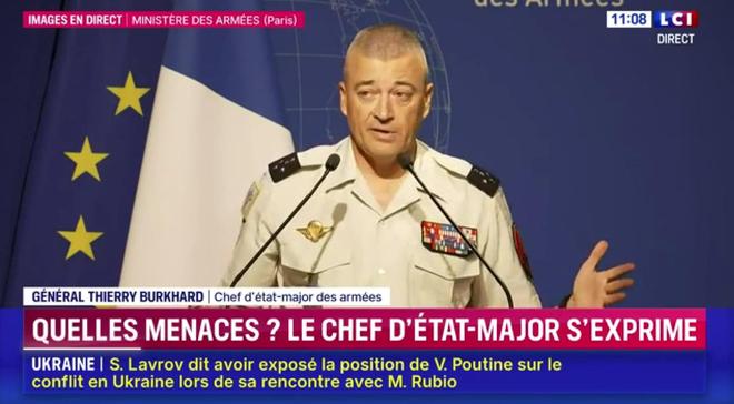 法国军队总参谋长蒂埃里·布克哈德发言(法媒视频截图)