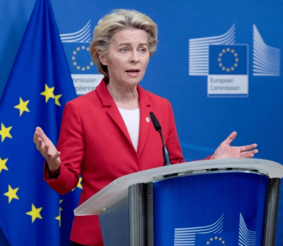 欧盟委员会主席冯德莱恩发表讲话画面