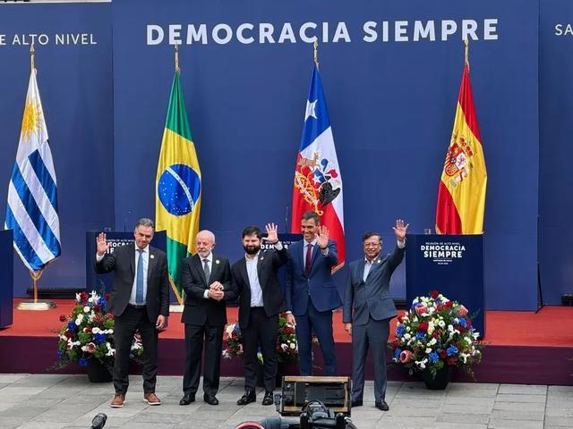 智利总统博里奇、巴西总统卢拉、西班牙首相桑切斯、哥伦比亚总统佩特罗和乌拉圭总统奥尔西发布联合声明
