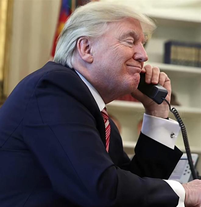特朗普打电话画面 资料图(图片来源:参考消息)