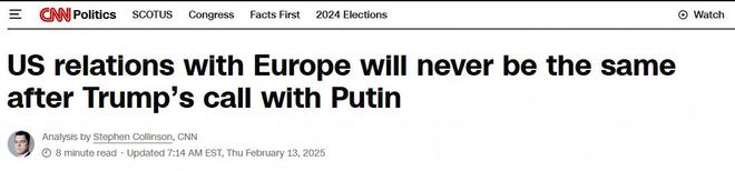 参考消息网2月15日报道 美国有线电视新闻网网站2月13日刊登题为《特朗普与普京通话后,美欧关系回不去了》的文章,作者是... 参考消息网2月15日报道 美国有线电视新闻网网站2月13日刊登题为《特朗普与普京通话后,美欧关系回不去了》的文章,作者是斯蒂芬·柯林森。文章摘编如下:
