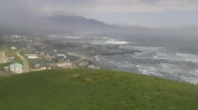 据海客新闻,数米高海啸冲毁北千岛群岛沿岸建筑,大片土地被淹没。