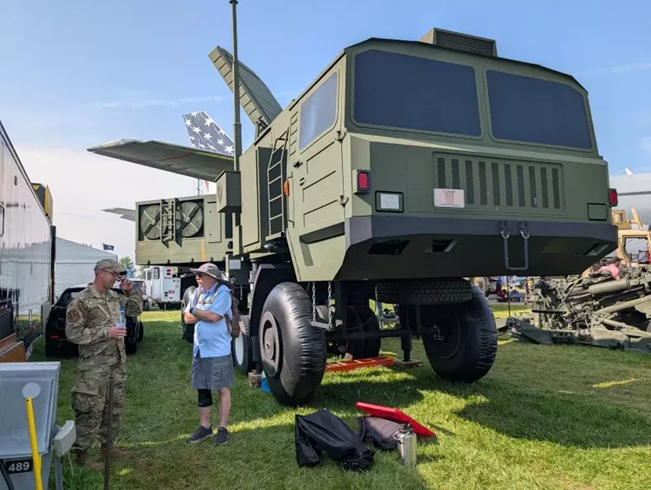 根据威斯康星州国民警卫队7月29日发布的照片,美国空军于7月25日在该州奥什科什举行的一场航空展览上展示了一款新型“红旗-16防空导弹系统的仿制品”。