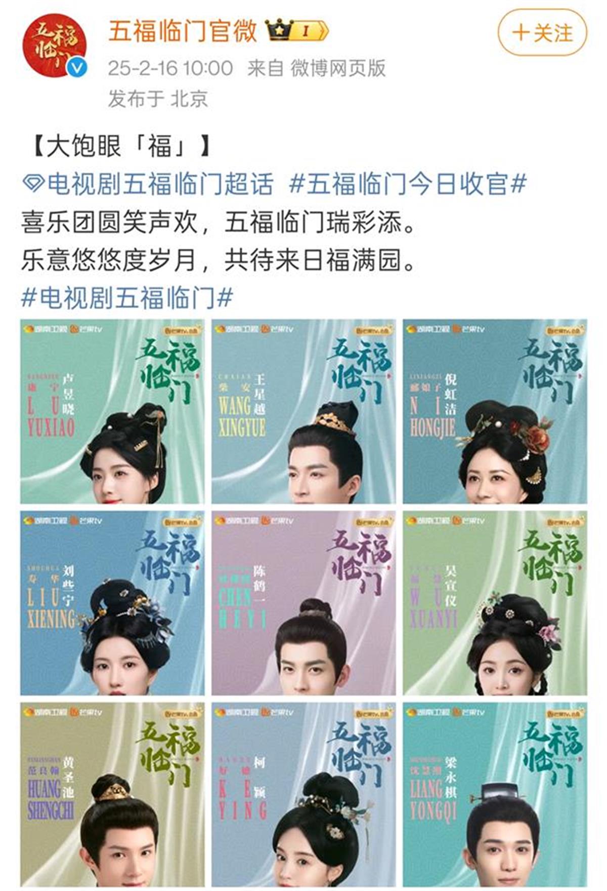 上午10时,《五福临门》官方账号发布了一系列角色海报,以“喜乐团圆笑声欢,五福临门瑞彩添”祝福这部剧的结尾。
