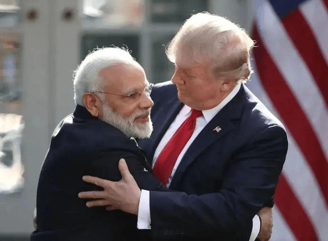 特朗普和莫迪拥抱画面