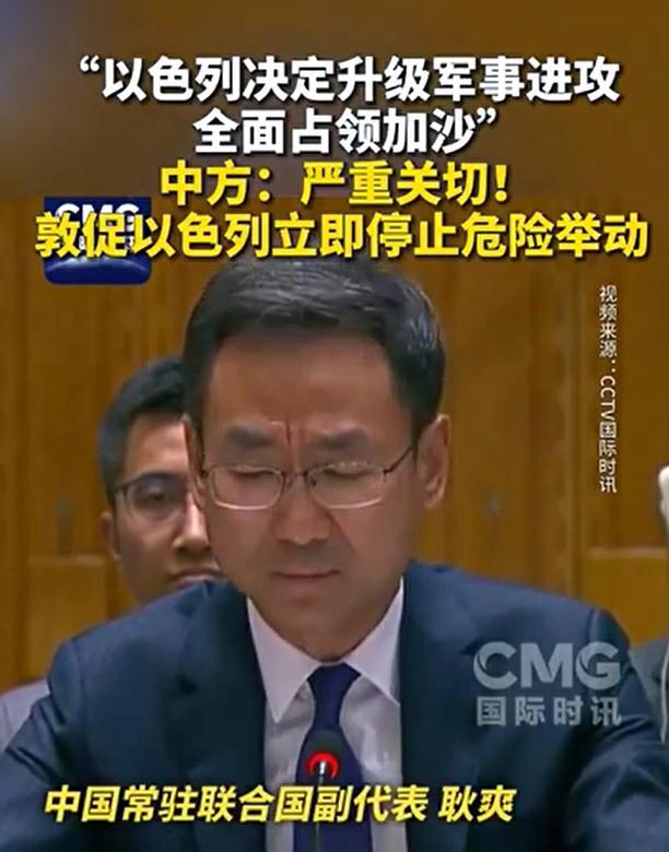 联合国安理会就巴以问题举行公开会。对于有以色列媒体报道,以色列决定升级军事进攻,全面占领加沙,中国常驻联合国副代表耿爽在发言中表示严重关切,立即敦促以色列停止这种危险举动,敦促各方立即达成有约束力、可持续的停火协议。耿爽强调,立即停火才是拯救生命、让人质回家的正确方式。