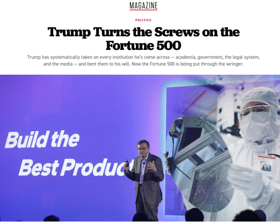 “政客”的这篇文章还担忧地指出,在目前美国的政治环境下,被盯上的企业恐怕只能低头,像苹果公司的CEO库克或英伟达的老板黄仁勋那样展现出“服从性“。
