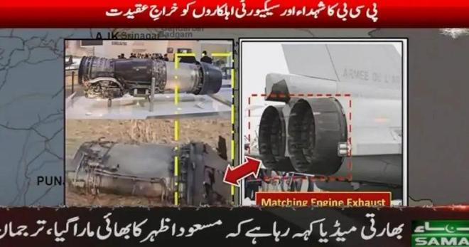 巴军展示并对比了网上流传的飞机残骸和印军“阵风”的对比图像