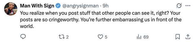 也有网友表示,“你知道你发布的内容其他人是可以看到的吧?你的帖子实在令人尴尬。你正在全世界面前让我们更难堪”。↓