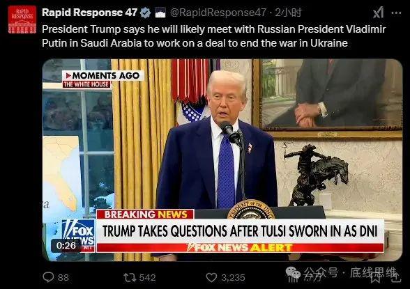 值得注意的是,除了在俄乌问题的定性方面出现了变化之外,特朗普也没有提出结束战争的前提条件,没有延续拜登政府给俄罗斯“设置红线”的做法,这再次翻转了民主党的既定政策。