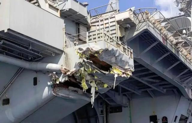 美军核动力航母,撞伤后照片首曝光