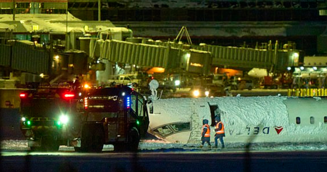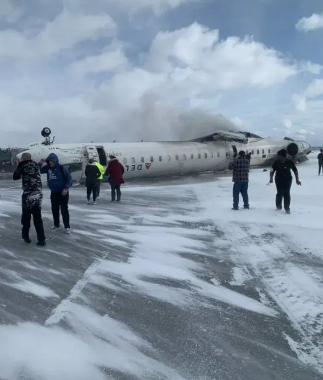 当地时间2月17日下午,在加拿大多伦多皮尔逊国际机场,美国达美航空公司一架载有80人的客机降落时发生事故,飞机侧翻后倒扣... 当地时间2月17日下午,在加拿大多伦多皮尔逊国际机场,美国达美航空公司一架载有80人的客机降落时发生事故,飞机侧翻后倒扣在地上。皮尔逊地区当地警方表示,正在对事故原因进行调查。当地急救人员则表示,在空姐冷静指挥之下,机上80人安全撤离,确认无人死亡,但有至少18人受伤。从现场拍摄的视频和照片看,飞机尾部一度浓烟滚滚。
