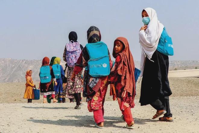 2024年10月21日,阿富汗霍斯特省,放学回家的女生。图/视觉中国