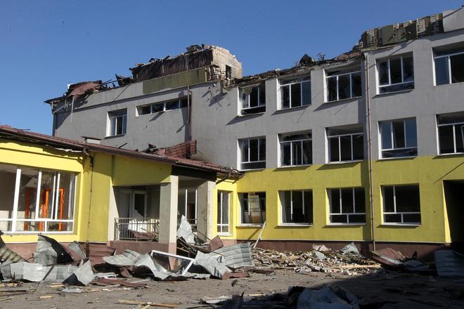 8月19日,乌克兰第聂伯罗彼得罗夫斯克州瓦西里基夫卡村,一所学校在无人机袭击中受损 据视觉中国