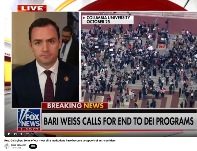 从美国媒体今年以来诸多涉及美国高校的公开报道、以及美国社交媒体上的相关争吵中不难看出,加拉格尔们认为,如今美国高校长期占主导的意识形态,是一种被加拉格尔所来自的美国右翼保守派势力称为“觉醒文化”(Woke)的价值观。这种价值观在巴以冲突上展现出的反以色列的立场、以及在种族主义等议题上展现出的对身份政治的推崇,让美国右翼保守派恨得牙痒痒。