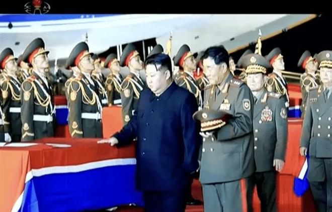 仪式上,在向金永福等前线指挥官、官兵代表授勋后,金正恩向阵亡官兵遗像依次挂上“共和国英雄”称号勋章。之后,金正恩及劳动党中央高级官员向阵亡官兵遗像献花致哀,其他在场人员依次向前献花,遗属们也上台抚摸、亲吻遗像。这个过程中,金正恩没有提前离场,而是等在台下,和遗属们一一握手拥抱。