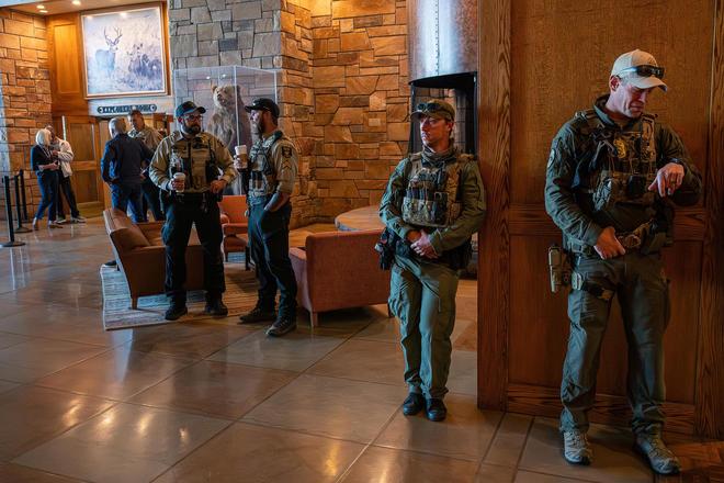 但在今年,以往的平静氛围完全被打破。据报道,与往年相比,今年会议活动的安保措施明显加强,这加剧了集会现场的紧张气氛。美国联邦警察、国家公园警察和提顿县警长办公室的警员始终在场守候,还有一些人“身着军装,携带枪支武器”,这样的安保级别在往年很难想象。