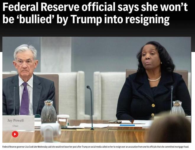 业内许多分析人士认为,针对丽莎·库克个人的“抵押贷款欺诈”指控只是一个借口,特朗普真正的目标是美联储的独立性。