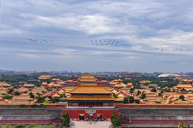 纪念抗战胜利80周年大会第三次综合演练,战机飞过上空 视觉中国