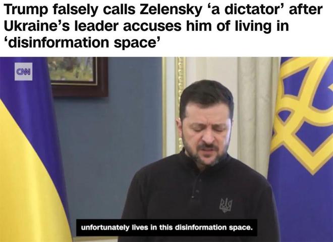 泽连斯基话音刚落,特朗普就在社交媒体上发长文,展开人身攻击模式,声称泽连斯基是“一个不举行选举的独裁者”“在乌克兰民意调查中支持率很低”“唯一擅长的就是‘像拉小提琴一样’把(美方)玩弄于股掌之上”“可能想继续(从美国)‘捞钱’”。