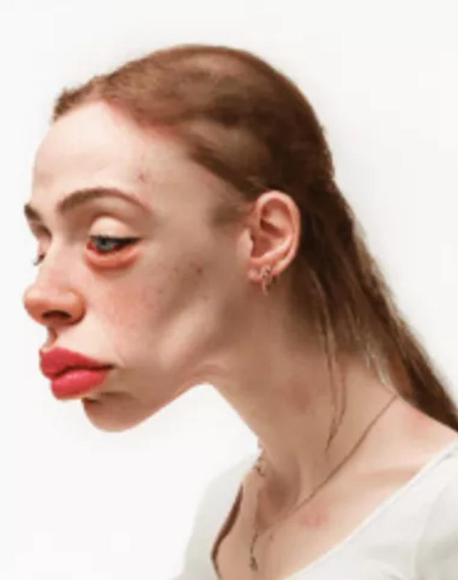 “艾娃”身上的皮肤斑是由接触性皮炎引起的,这种疾病可能是由于每天使用化妆品和更换护肤品造成的。长期接触LED照明(例如直播时为了获得更好的照明而使用的环形灯)以及电脑和手机屏幕的使用也加速衰老,导致了“艾娃”脸上呈现出皱纹、持续的炎症和色素变化。她的黑眼圈源于电脑视觉综合症,也称为“数码眼”,网红一般会花费数小时编辑视频、进行直播,一直盯着屏幕会导致眼睛发红、干燥、视力模糊、出现黑眼圈和眼袋浮肿。
