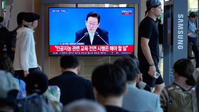 韩国街头播放李在明就职百日记者会画面(图/新华社)据中新网等报道,9月11日,韩国总统李在明迎来就职百日。当天,他在青瓦... 韩国街头播放李在明就职百日记者会画面(图/新华社)