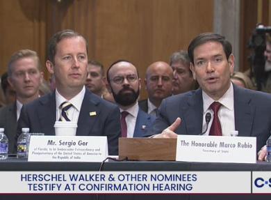 11日,鲁比奥陪同戈尔出席参议院提名确认听证会 视频截图