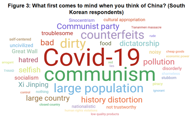 新冠疫情初期,韩国保守派猛烈批评文在寅政府“未能及时禁止中国航班入境”,将防疫不力归咎于所谓“对中国的屈从”。在这种叙事下,疫情不仅是公共卫生危机,更被演绎成一场“由中国带来的国家安全威胁”。这也解释了为何在韩国的民调中,“新冠病毒”常常排在公众对中国的首要印象之列。