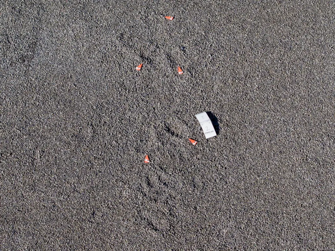 泰勒·罗宾逊开枪杀死柯克时,在大楼屋顶上留下压痕