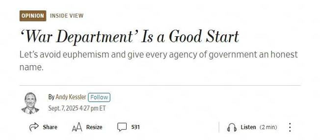 美国防部改名后,华尔街日报建议其他政府机构都别"装"了