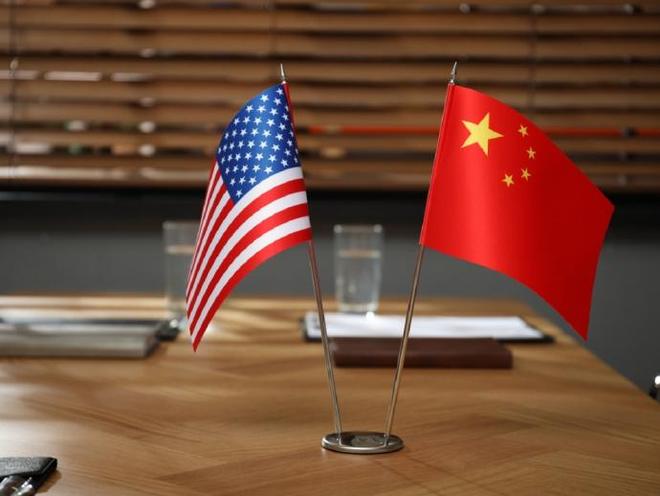 图为中国国旗和美国国旗 资料图