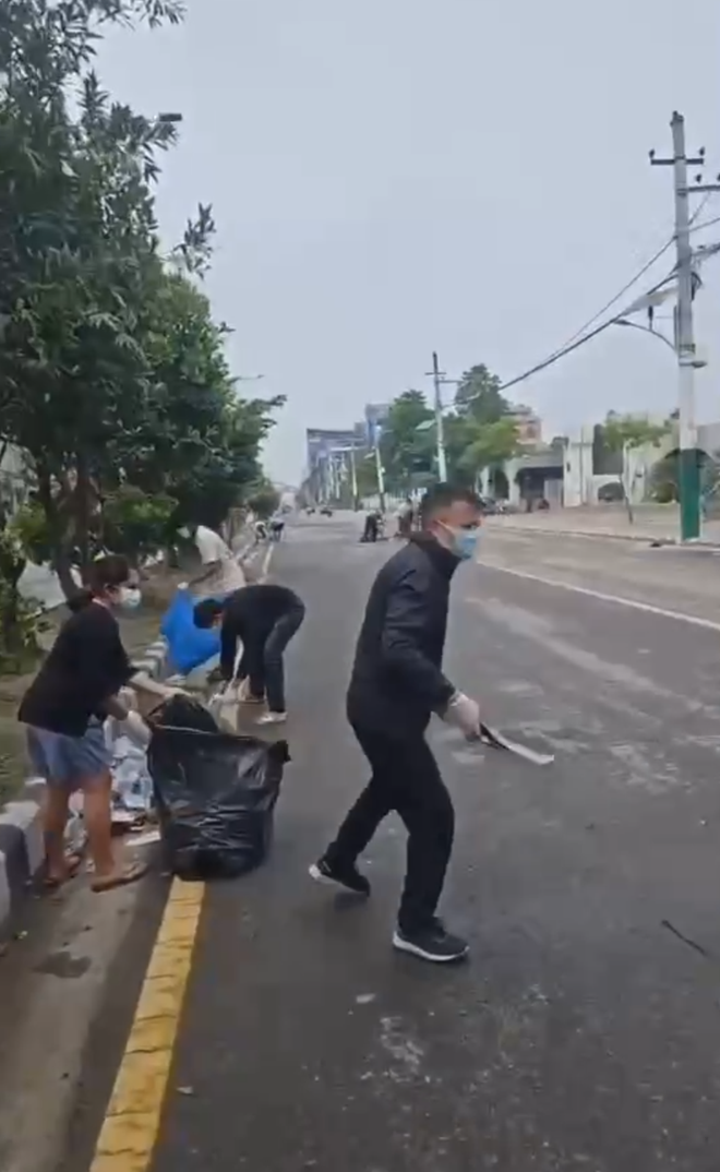 △骚乱发生后,尼泊尔人打扫街道。受访者提供