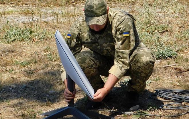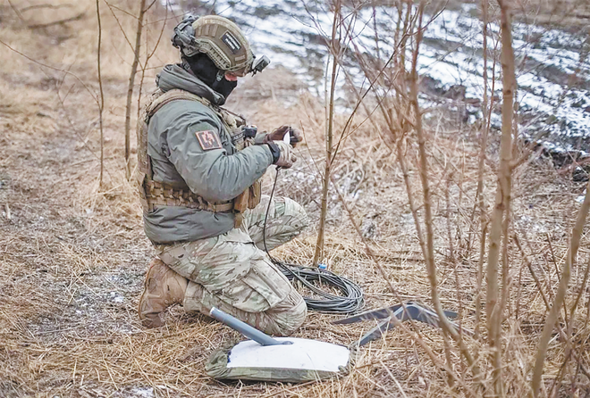 乌军士兵在前线部署“星链”设备 图源:路透社