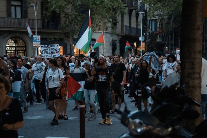 当地时间2025年9月15日,西班牙巴塞罗那,当地民众举行游行声援巴勒斯坦 图/视觉中国
