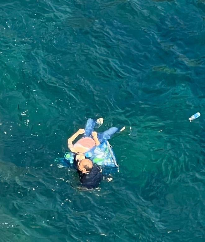 “下到岸边,我看到有人扔过来一个塞满矿泉水瓶的漏网编织袋,正在海面上漂着。我就抓住了那个袋子,游到了落水女子旁边,当时她已经面部朝下了,基本不太动弹,偶尔抽一下,没啥力气,嘴里吐着细小的泡沫。”杨先生说,紧接着,他把那名落水女子头部拖到装瓶子的袋子上,让她仰面躺在海上,带着她朝岸边划去,但是海水浪很大,一个浪过来又被拍回去,游起来很费劲。