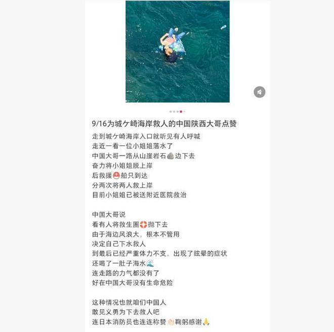 54岁陕西硬汉日本跳海勇救落水女子:上个月刚做锁骨手术,最后精疲力竭叼着她头发靠岸
