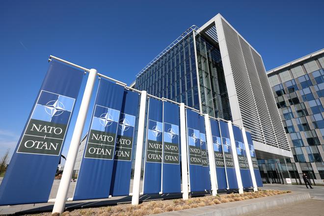 这是4月4日在比利时布鲁塞尔拍摄的北约总部一角 新华社记者赵丁喆摄