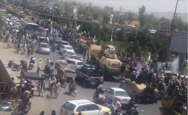 2021年塔利班展示缴获的美军等外国军队武器 图:环球时报