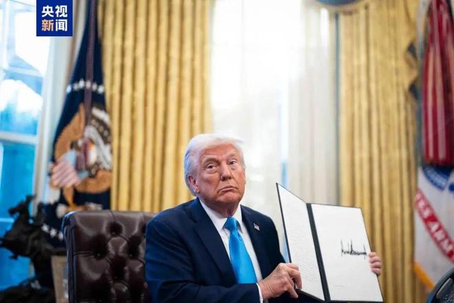 特朗普再次就任美国总统以来,频频签署行政令 图:央视新闻