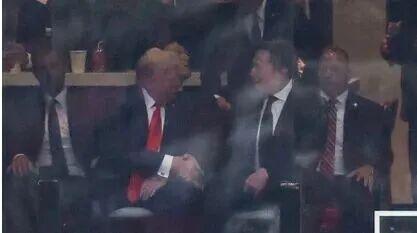 特朗普(左2)与马斯克(左3)握手 图:环球网