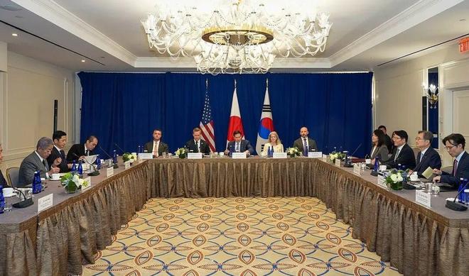 当地时间9月22日,在纽约,美日韩外长举行会晤